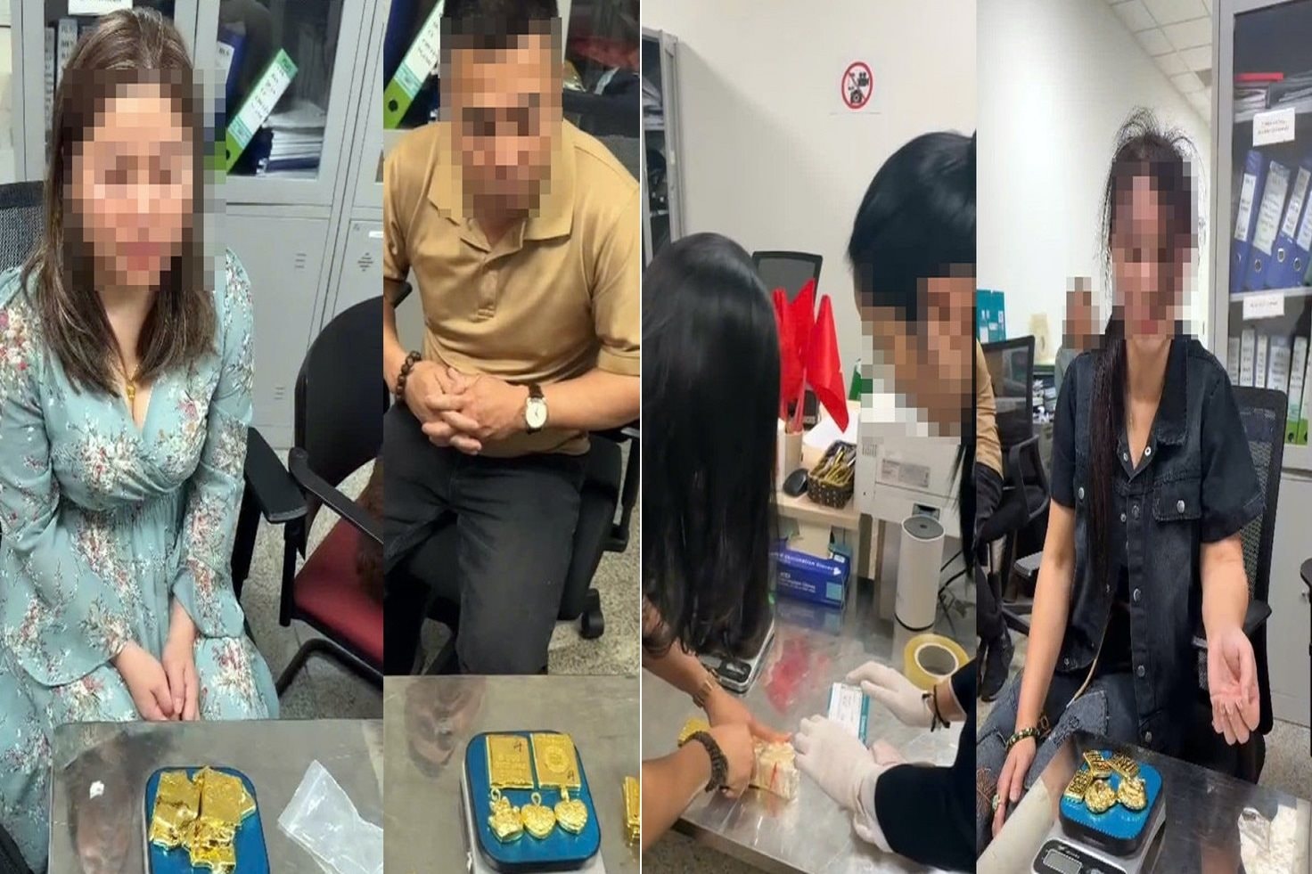Cụ thể, khoảng 9h40 ngày 3/3, tại khu vực cửa hải quan số 3, 6 và 7, lực lượng chức năng phát hiện 4 hành khách có biểu hiện nghi vấn, không thực hiện khai báo hải quan. Qua kiểm tra, hành khách P.T.H cất giấu 10 miếng kim loại màu vàng, nghi là vàng, nặng khoảng 5kg trong áo ngực và đũng quần lót; hành khách V.T.M giấu 5 miếng, nặng khoảng 1,1kg; hành khách N.V.L giấu 6 miếng, nặng khoảng 3,5kg; và hành khách S.M.H giấu 7 miếng, nặng khoảng 2,7kg trong người. Các hành khách này đều nhập cảnh từ Đài Loan (Trung Quốc).