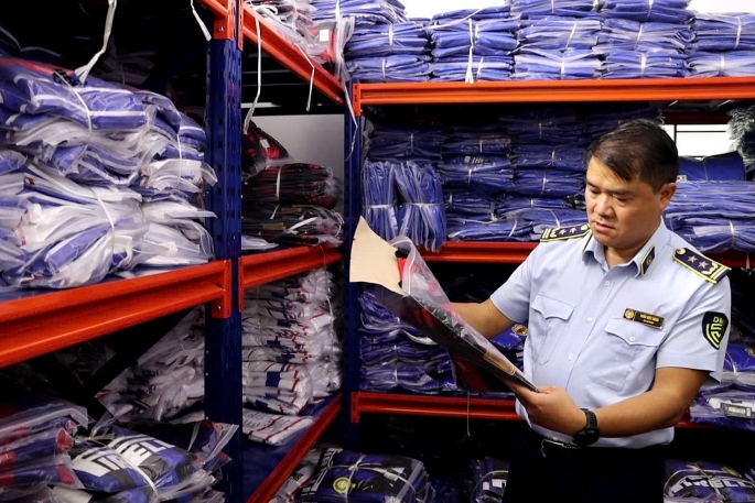 Tối 8/12, Đoàn kiểm tra của Phòng Nghiệp vụ Quản lý thị trường (thuộc Cục Quản lý và Phát triển thị trường trong nước) phối hợp cùng Phòng An ninh mạng và Phòng chống tội phạm sử dụng công nghệ cao PA05, Công an TP Hà Nội kiểm tra một cửa hàng kinh doanh quần áo thể thao trên phố Hoàng Công Chất, phường Phú Diễn.