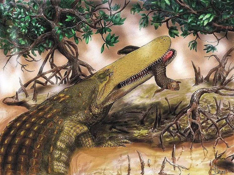 Loài mới xác định thuộc họ Dyrosauridae. Đây là một dòng dõi bò sát giống cá sấu đã tuyệt chủng, là họ hàng xa của cá sấu hiện đại. Ảnh: Dane Johnson/Museum of the Rockies.