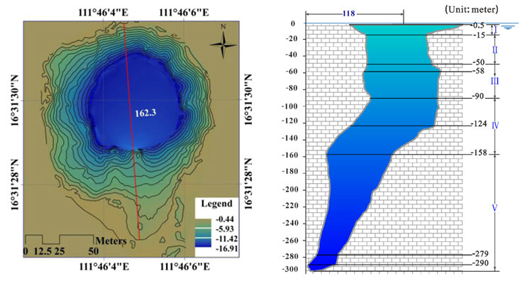Lối vào Hố Rồng với hình dạng giống chiếc giày múa ba lê - cấu trúc độc đáo dưới Biển Đông, nơi các nhà khoa học phát hiện hơn 1.700 loại virus cổ đại. (Nguồn: Nature)