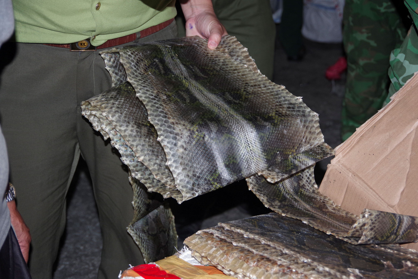 Lực lượng tuần tra tiến hành kiểm soát, phát hiện trên 2 phương tiện có tổng cộng hơn 7 tấn hàng hóa không hóa đơn, chứng từ, gồm: Hơn 4 tấn vảy động vật nghi là vảy tê tê; 150 bộ da trăn; 40kg mật động vật; gần 1,6 tấn da cá; 17,5kg còi ốc; 36kg xương động vật; 100kg da động vật chưa xác định chủng loại; 2kg mang cá; 39 mỏ chim; 210 răng động vật...