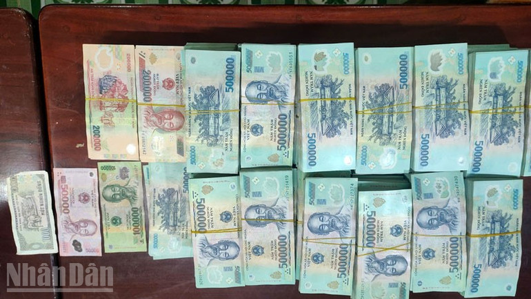 Lượng lớn tiền mặt bị lực lượng chức năng thu giữ.
