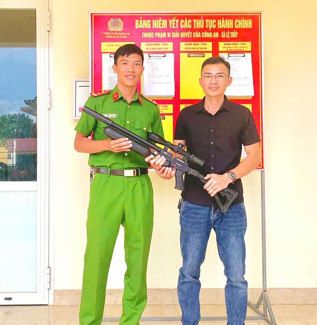 Công an xã Lệ Thủy đã tiến hành lập biên bản tiếp nhận; đồng thời biểu dương tinh thần trách nhiệm và ý thức chấp hành pháp luật của anh Mai Văn Duy. Được biết, từ đầu năm đến nay, Công an xã Lệ Thủy đã vận động giao nộp 3 khẩu súng tự chế, 2 vũ khí thô sơ, 2,4kg pháo các loại, 1 công cụ kích điện…