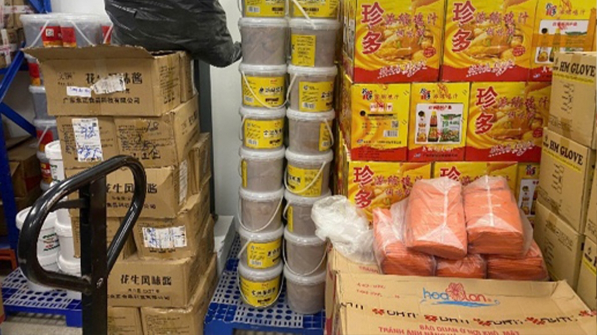Đáng chú ý, lực lượng chức năng phát hiện 1.141 sản phẩm với tổng khối lượng hơn 1,5 tấn là các loại nguyên liệu, gia vị nhúng lẩu, tương ớt, nước chấm… do nước ngoài sản xuất, nhưng không có hóa đơn, chứng từ chứng minh nguồn gốc xuất xứ.