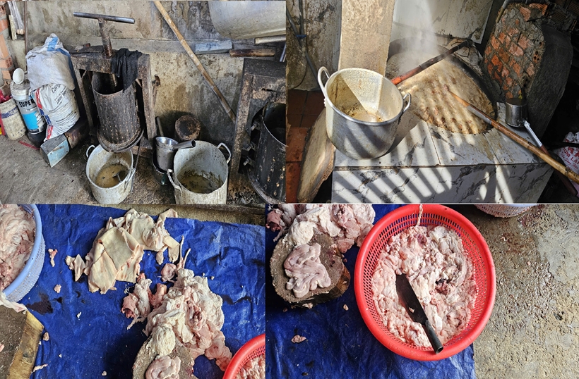 Tại thời điểm kiểm tra, lực lượng chức năng phát hiện cơ sở đang hoạt động với hai lò nấu mỡ, hai công nhân làm việc và khoảng 200kg mỡ heo được để trực tiếp dưới nền nhà chờ đưa vào chế biến. Toàn bộ số mỡ này không có hóa đơn, chứng từ chứng minh nguồn gốc xuất xứ, được thu mua từ người bán vãng lai, không rõ nhân thân, lai lịch. Chủ cơ sở cũng không xuất trình được giấy chứng nhận đủ điều kiện vệ sinh thú y theo quy định.