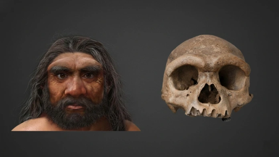 Hộp sọ Người Rồng Cáp Nhĩ Tân (trái) và chân dung được tái hiện - Ảnh: VIỆN HÀN LÂM KHOA HỌC TRUNG QUỐC