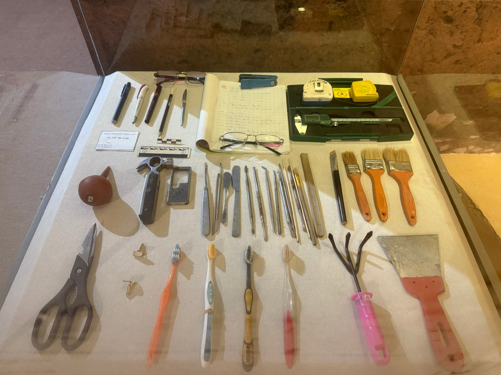 Những vật dụng mà các nhà khảo cổ học sử dụng để khai quật, bảo tồn các hiện vật tìm thấy. Ảnh: H.L