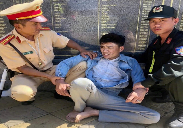 Đối tượng õ Phước Bảo bị lực lượng công an bắt giữ. (Ảnh: CSGT)
