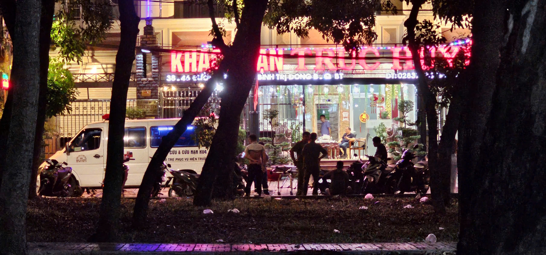 Công an phường An Lạc cùng các đơn vị nghiệp vụ Công an TPHCM đã nhanh chóng có mặt, phong tỏa khu vực xung quanh khách sạn để thực hiện công tác khám nghiệm.