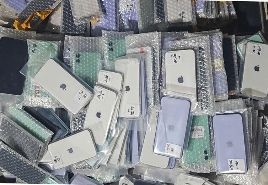 Kết quả kiểm tra thực tế hàng hóa cho thấy, ngoài các mục hàng phù hợp với khai báo còn có một số mục hàng không có trong khai báo hải quan bao gồm: 356 chiếc iPhone đã qua sử dụng, 2.300 chiếc loại lọc gió, lọc nhớt động cơ xe ôtô trên sản phẩm bao bì có nhãn Hyundai, Kia (Made in Korea); 200 cái vòng bi gắn nhãn hiệu Koyo; 6.190 sản phẩm phụ kiện điện thoại gồm tai nghe, củ sạc và dây điện thoại có gắn nhãn hiệu iPhone, Samsung, OPPO.