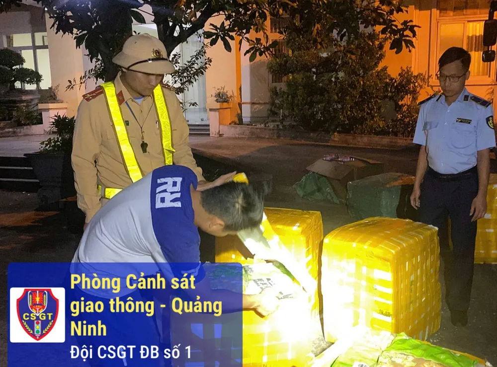Ngày 29-10, thông tin từ Công an tỉnh Quảng Ninh, trong quá trình tuần tra kiểm soát, Đội CSGT đường bộ số 1, Phòng CSGT đã phát hiện một ô tô vận chuyển 350 kg thực phẩm không rõ nguồn gốc và 10 thùng đồ chơi các loại.