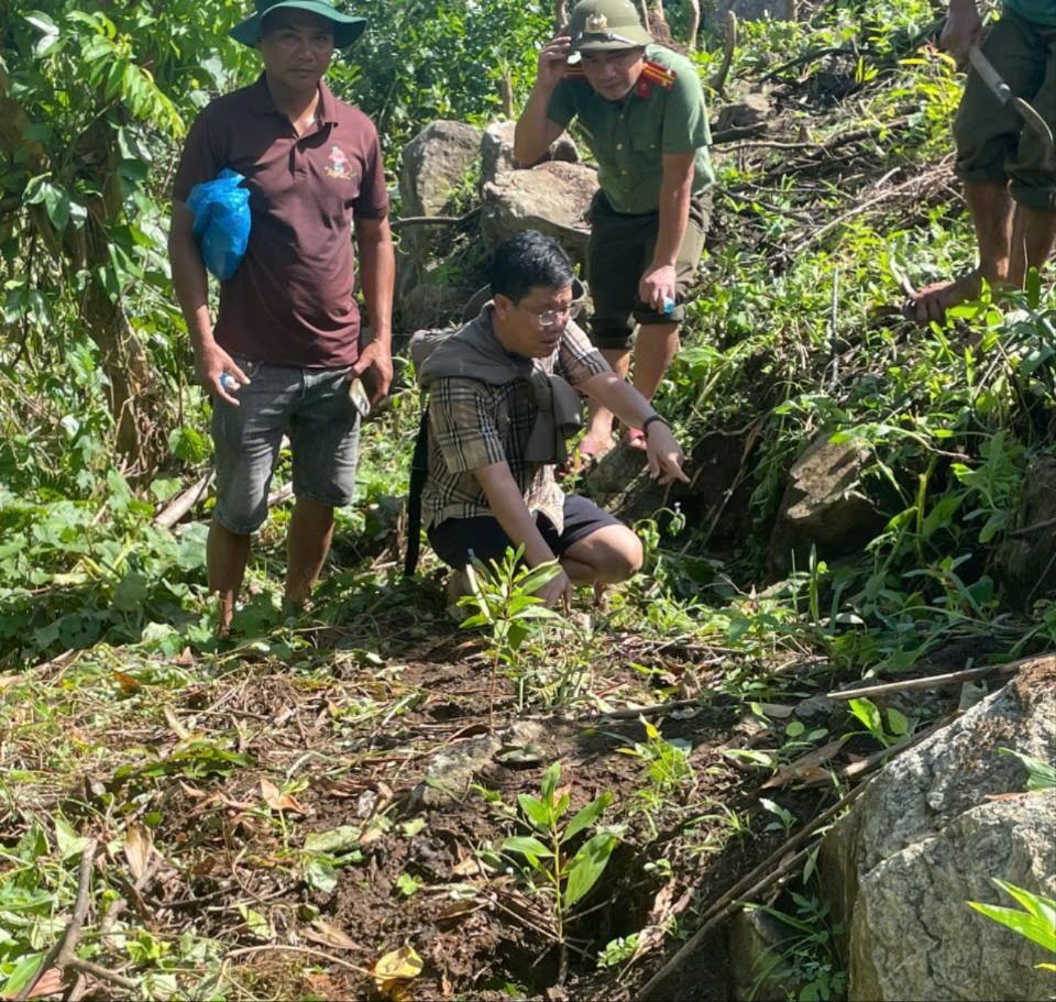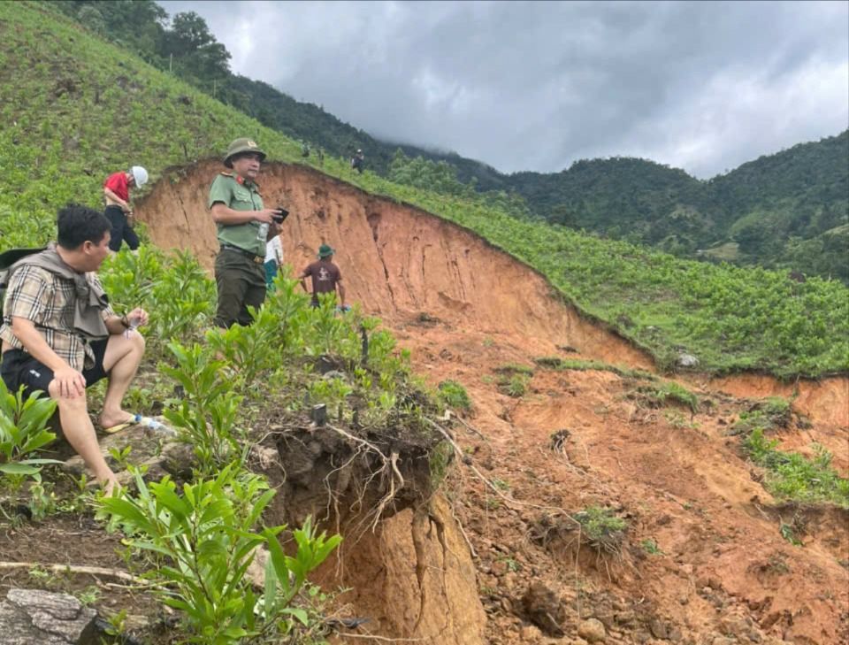 Tổ công tác ghi nhận 3 vị trí nứt núi, nguy cơ sạt lở. Vị trí thứ nhất, cách khu dân cư khoảng 2km, đã xảy ra sạt lở đất với khối lượng ước tính 3.000 - 5.000m³. Phía dưới điểm sạt lở xuất hiện dòng nước đục không rõ nguồn.