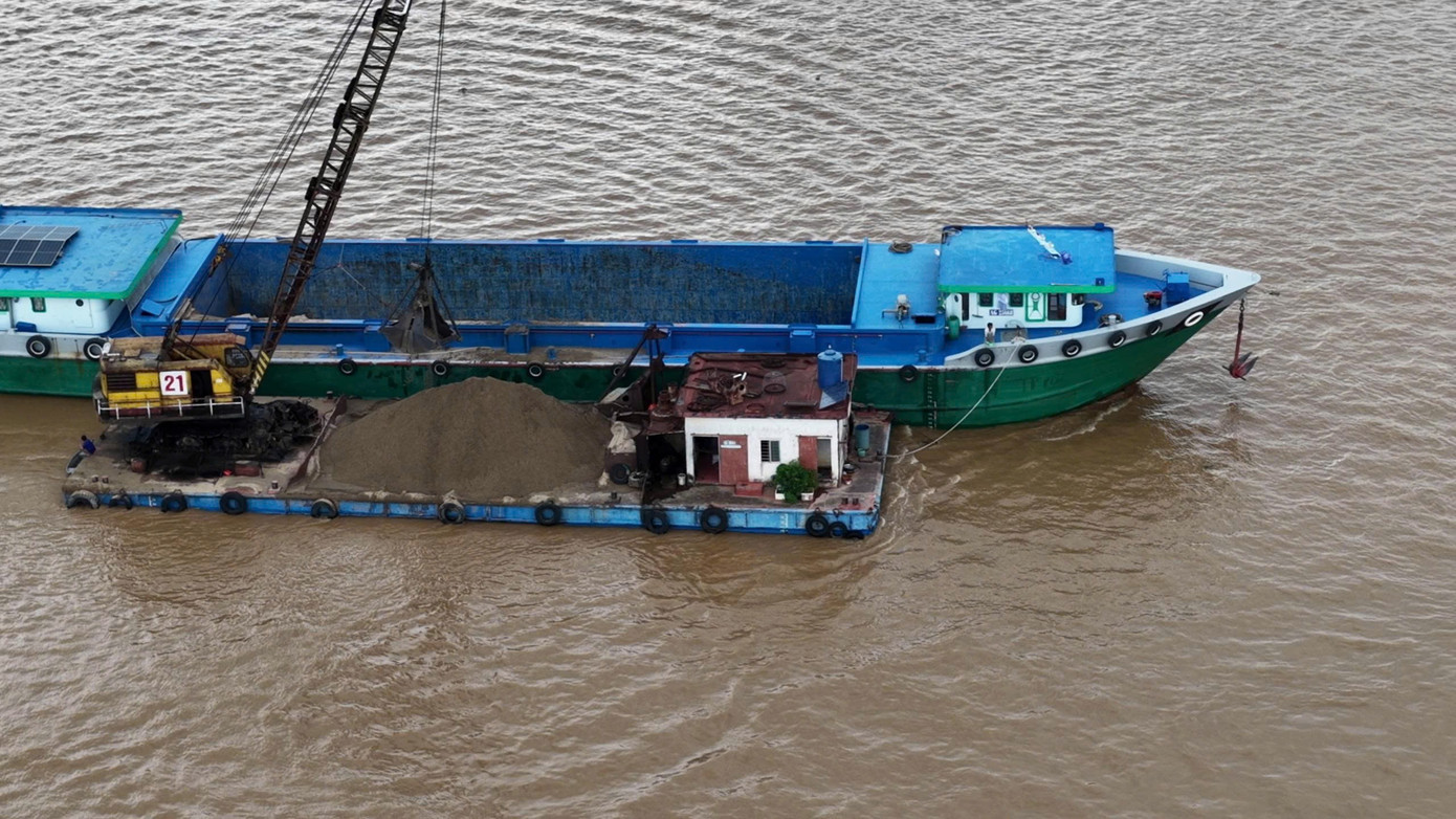 Tàu thuyền chở vật liệu xây dựng trên sông.