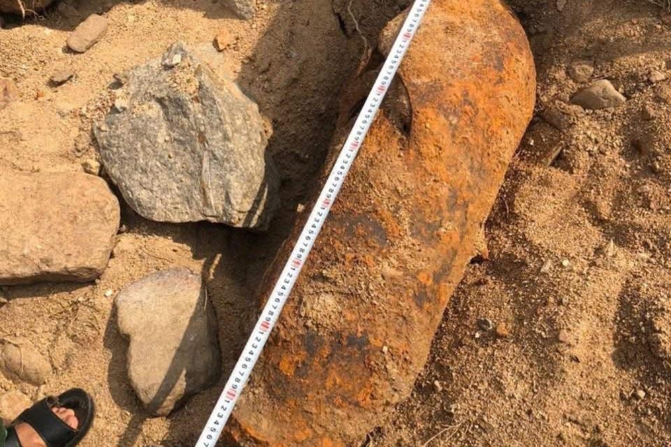 Quả bom được ông Cao Cường (SN 1994), trú tại thôn 2, xã Tuy Phong phát hiện tại khu vực suối Tân Lai, xã Tuy Phong vào lúc 7h00 sáng 12/11.