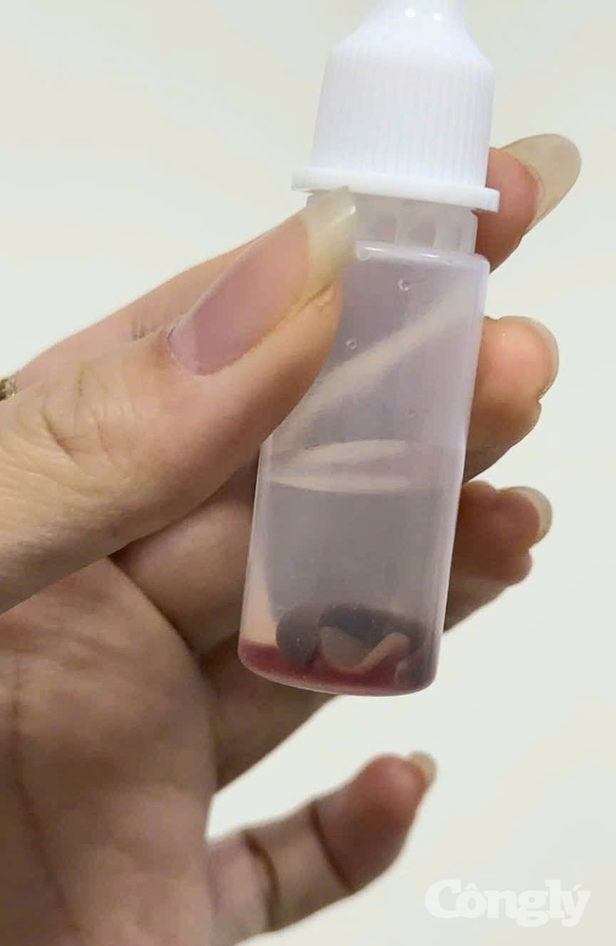 Sinh vật lạ sống ký sinh sâu trong hốc mũi của người đàn ông ở Quảng Ngãi được các bác sĩ gắp ra.
