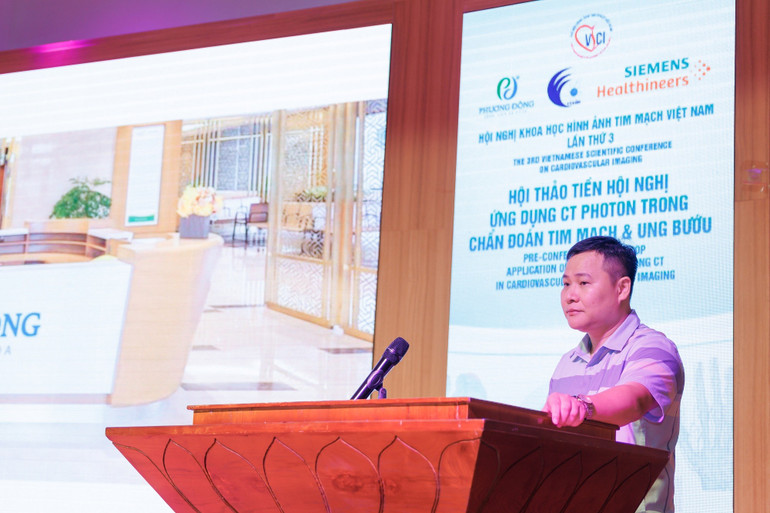 Bác sĩ chuyên khoa I, bác sĩ nội trú Ngô Quang Định, Giám đốc Trung tâm Chẩn đoán hình ảnh và Điện quang can thiệp Quốc tế Phương Đông (Bệnh viện đa khoa Phương Đông) chia sẻ tại hội thảo.