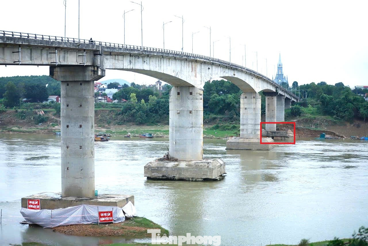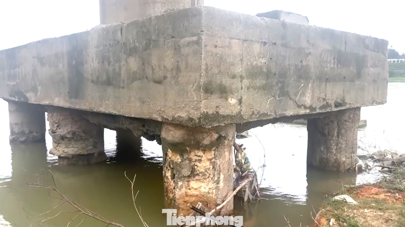 Mặt nước sông Lô hiện thấp hơn đài trụ T6 cầu Sông Lô khoảng 1m, để lộ 6 cọc bê tông, mỗi cọc có đường kính hơn 1m.