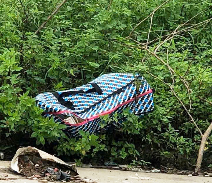 Thi thể bé trai được phát hiện trong túi bạt bị bỏ lại ven đường. Ảnh: CTV