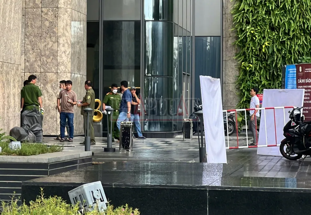 Trước đó, vào đầu giờ chiều, người dân ở sảnh tòa nhà nghe tiếng huyên náo nên chạy tới và được biết có hai người đàn ông mang theo túi màu xanh, valy rời khỏi tòa nhà. Một số người xung quanh phát hiện dấu hiệu bất thường cùng mùi lạ giống mùi hôi nên giữ lại kiểm tra.