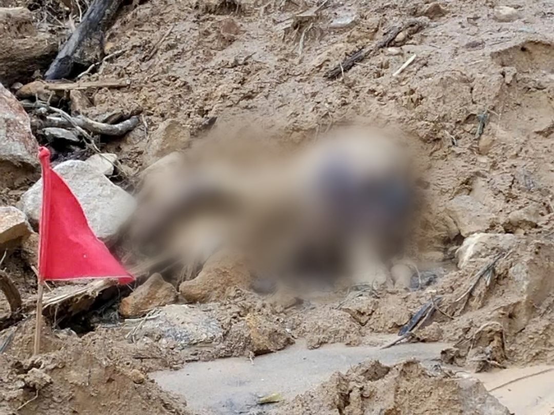 Mưa lớn kéo dài khiến lớp bùn, đất đá bị xói lở, trôi xuống, làm lộ thi thể trên bề mặt. Do thi thể nạn nhân đã phân hủy, công tác nhận dạng bước đầu gặp nhiều khó khăn. Lực lượng chức năng đã bảo vệ hiện trường, đưa thi thể ra ngoài và bàn giao cho cơ quan chuyên môn giám định, xác minh danh tính theo quy định.