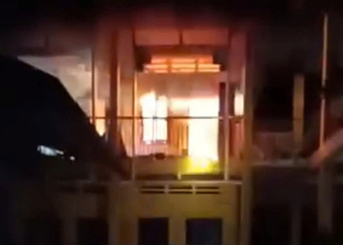 Ghi nhận tại hiện trường thời điểm xảy ra vụ cháy lửa bao trùm lên một căn phòng ở tầng 2 của trường.