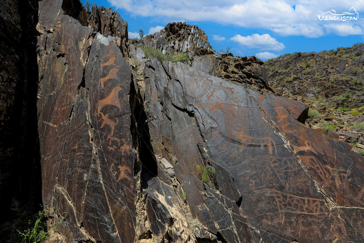 Những bức vẽ được tìm thấy trên các vách đá đen ở giữa thung lũng. Nhiều tảng đá có bề mặt phẳng trong khu vực đều có hình vẽ trên đó. Ảnh: @Viện Nghiên Cứu Khảo Cổ Học Uzbekistan.