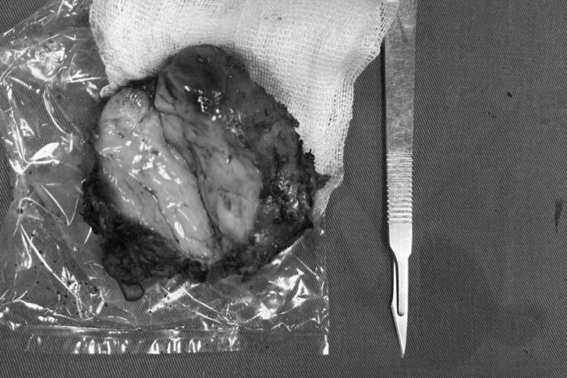 Khối u tuyến giáp của người đàn ông. Ảnh: BVCC.