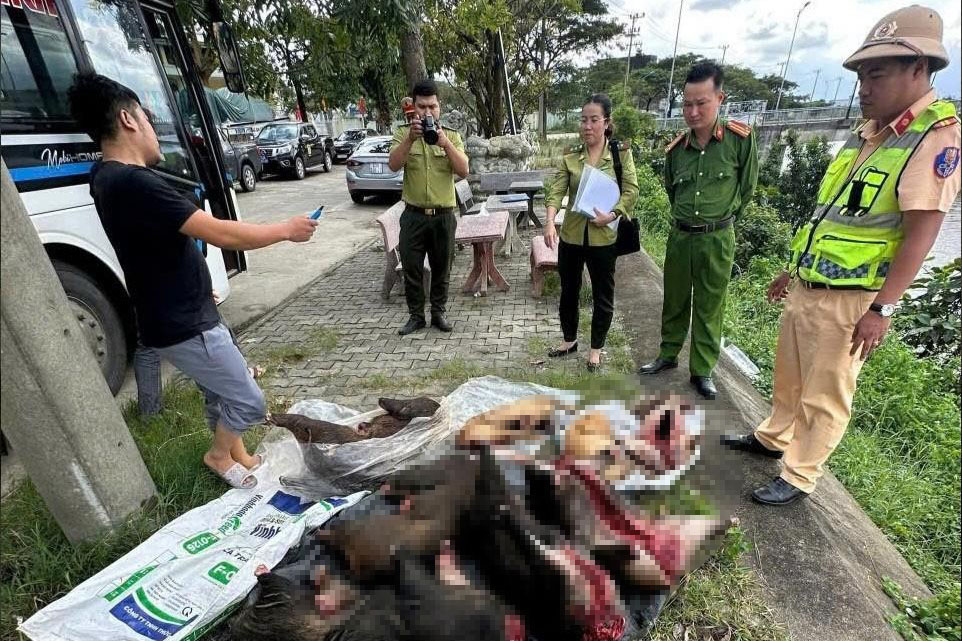 Qua kiểm tra, lực lượng chức năng phát hiện trên xe đang vận chuyển nhiều thùng xốp, bao tải chứa 11 cá thể cầy đông lạnh nghi là cầy mực thuộc nhóm động vật rừng nguy cấp, quý hiếm. Ngoài ra, trên xe còn có 9 cá thể động vật đông lạnh không đầu, không chân, chưa xác định được chủng loài.