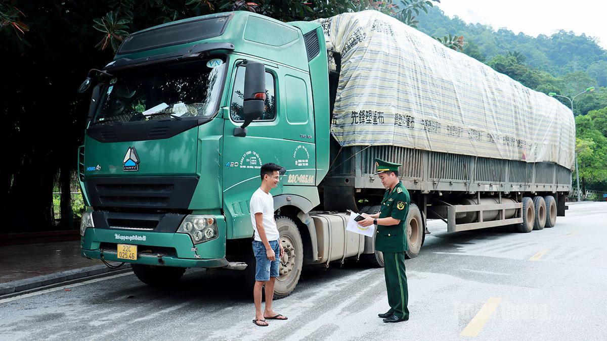Lực lượng chức năng kiểm soát người và phương tiện qua Cửa khẩu Quốc tế Thanh Thủy để chủ động phòng, chống buôn lậu.