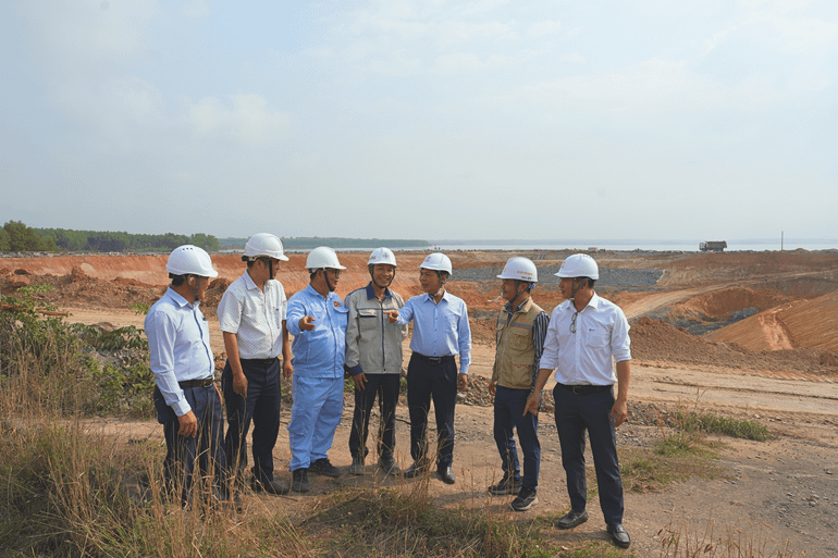 Ban điều hành trao đổi công việc cùng liên danh nhà thầu tại công trường Thủy điện Trị An mở rộng. (Ảnh: Tiến Khôi)
