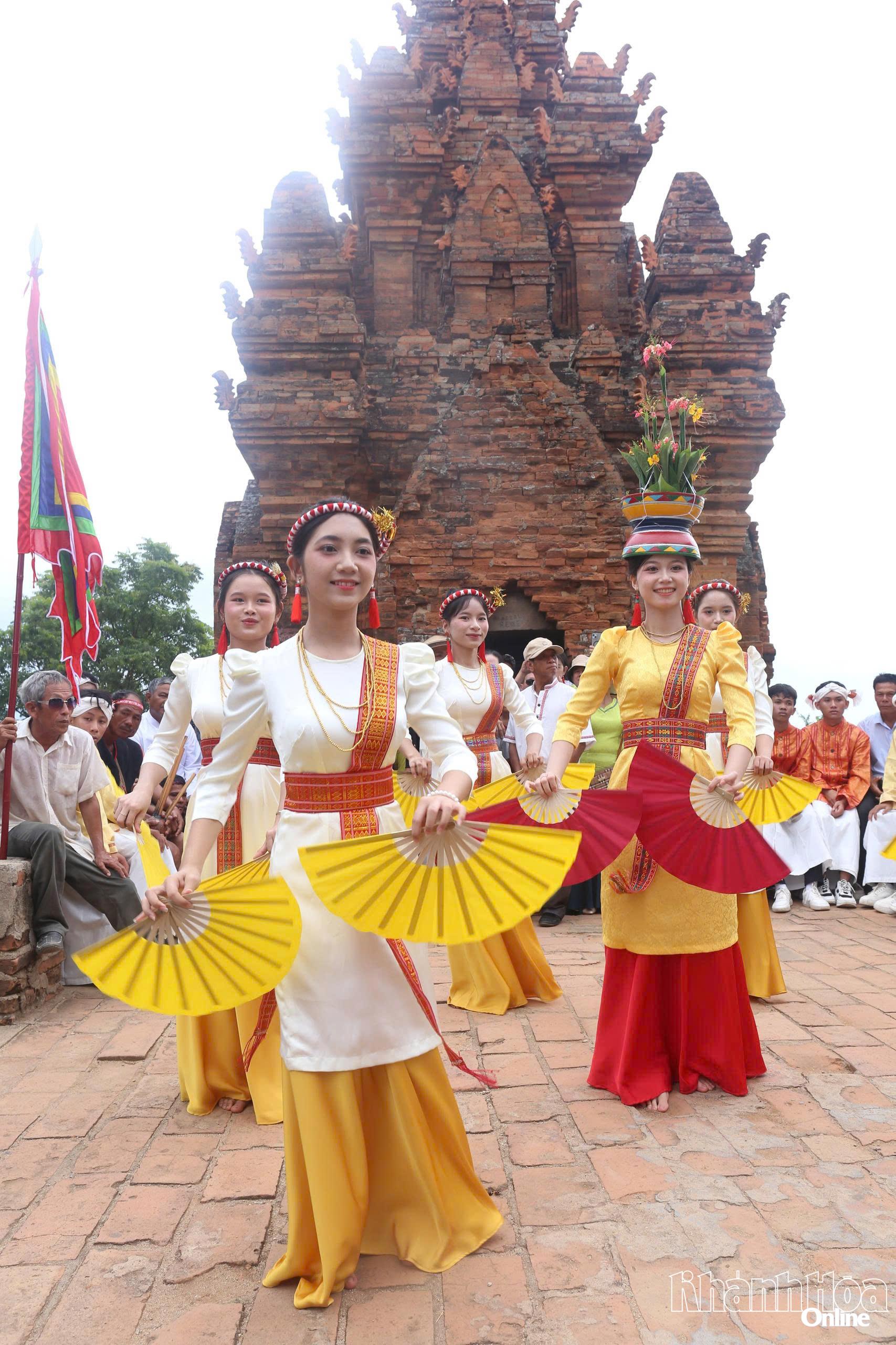 Các thiếu nữ Chăm trong trang phục truyền thống biểu diễn tại lễ hội Katê năm 2025