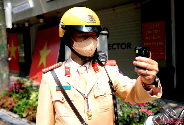 Quá trình thực hiện nhiệm vụ, cán bộ CSGT sử dụng camera chuyên dụng ghi lại toàn bộ.