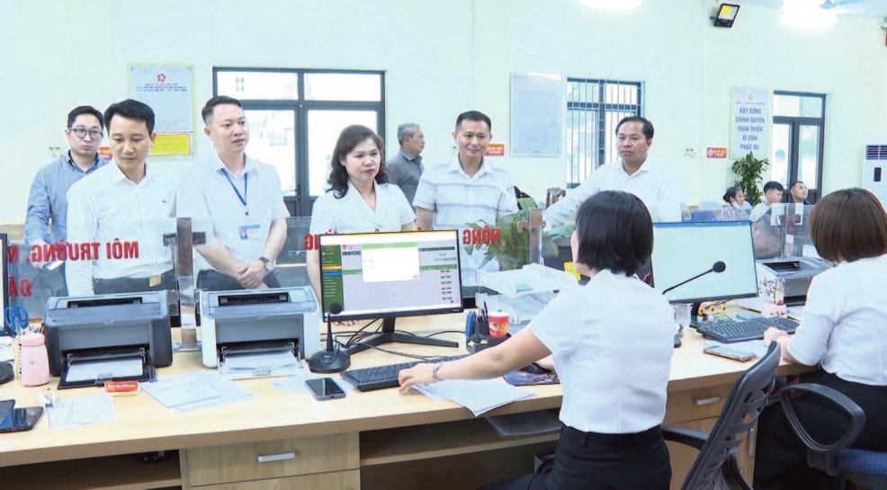 Phó Chủ tịch HĐND tỉnh Bắc Ninh Lâm Thị Hương Thành kiểm tra tình hình vận hành chính quyền địa phương 2 cấp tại Trung tâm Hành chính công xã Hợp Thịnh. Ảnh: Bách Hợp