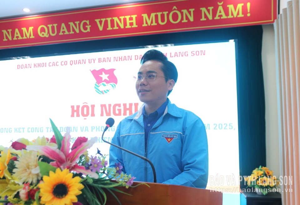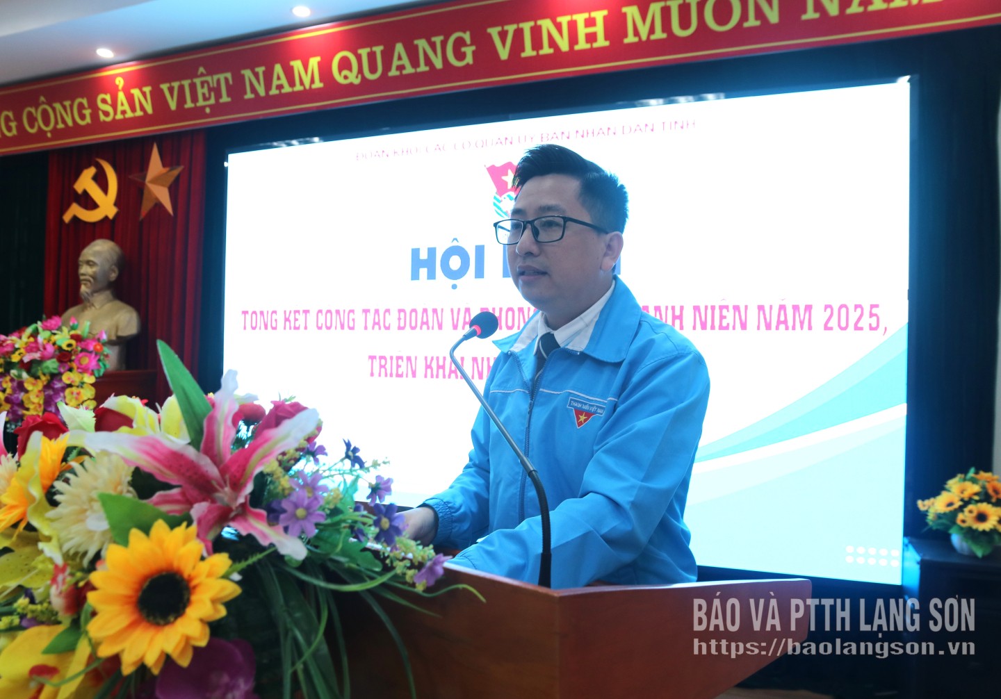 Đồng chí Bí thư Đoàn khối CCQ UBND tỉnh phát biểu tại hội nghị
