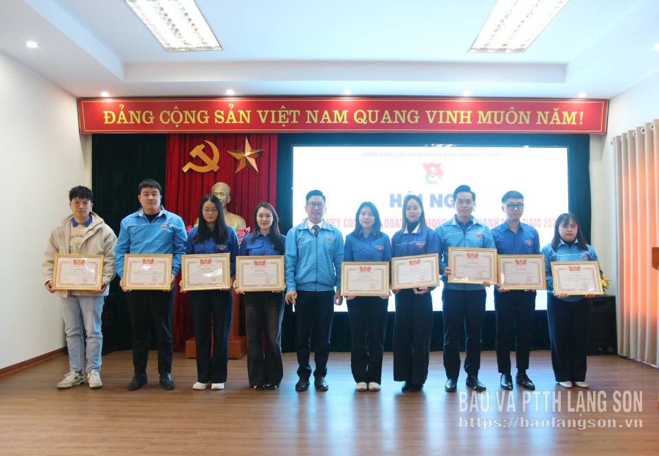Nhân dịp này, Đoàn khối CCQ UBND tỉnh đã trao giải cho các tập thể, cá nhân đoạt giải Cuộc thi tuyên truyền, quảng bá tiềm năng phát triển du lịch trong vùng công viên địa chất toàn cầu UNESCO Lạng Sơn, trong đó, giải nhất thuộc về đoàn viên Nguyễn Việt Trinh, Chi đoàn Báo và Phát thanh truyền hình Lạng Sơn.