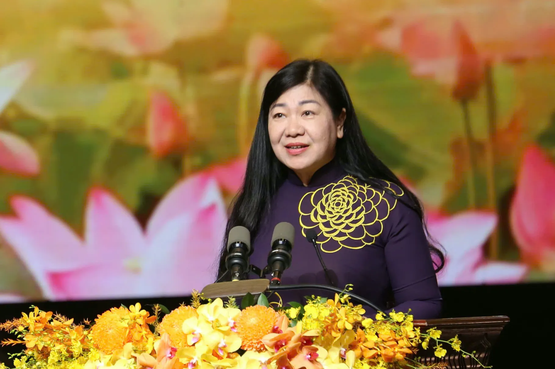 Chủ tịch Ủy ban MTTQ Việt Nam TP Hà Nội Nguyễn Lan Hương phát biểu hưởng ứng phong trào thi đua yêu nước giai đoạn 2025-2030