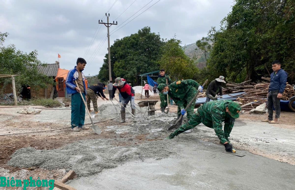 Cán bộ, chiến sĩ Đồn Biên phòng Bắc Xa, Bộ đội Biên phòng tỉnh Lạng Sơn tham gia cùng người dân địa phương làm đường liên thôn ở khu vực biên giới. Ảnh: Cộng tác viên