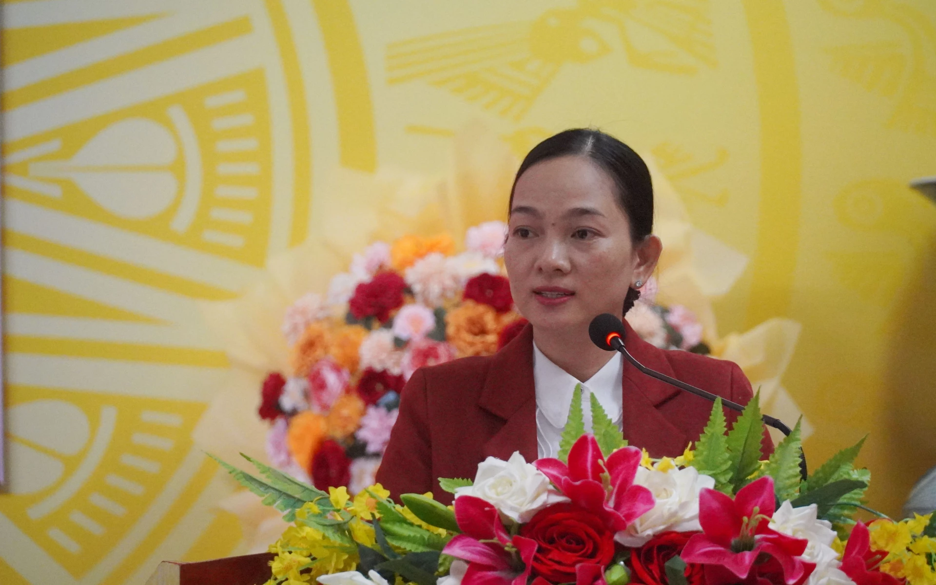 Bà Nguyễn Thị Bích Thủy, Trưởng phòng Tổ chức đảng và đảng viên, Ban Tổ chức Tỉnh ủy trình bày chương trình hành động - Ảnh: X.P