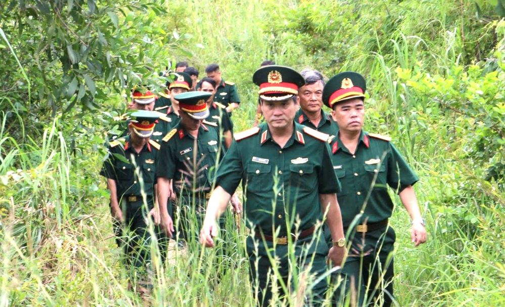 Trung tướng Lê Ngọc Hải, Tư lệnh Quân khu 5 dẫn đầu đoàn công tác đi khảo sát thực địa. Ảnh: LÊ TÂY