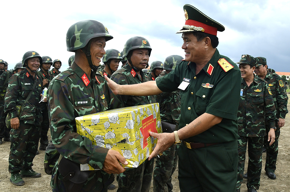 Trung tướng Nguyễn Xuân Dắt động viên cán bộ, chiến sĩ hoàn thành tốt nhiệm vụ diễn tập. Ảnh: QUANG ĐỨC