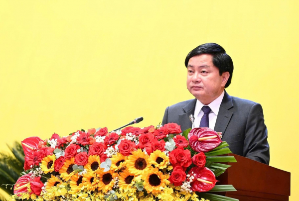 Bí thư Tỉnh ủy Nguyễn Văn Quyết phát biểu tại Đại hội.
