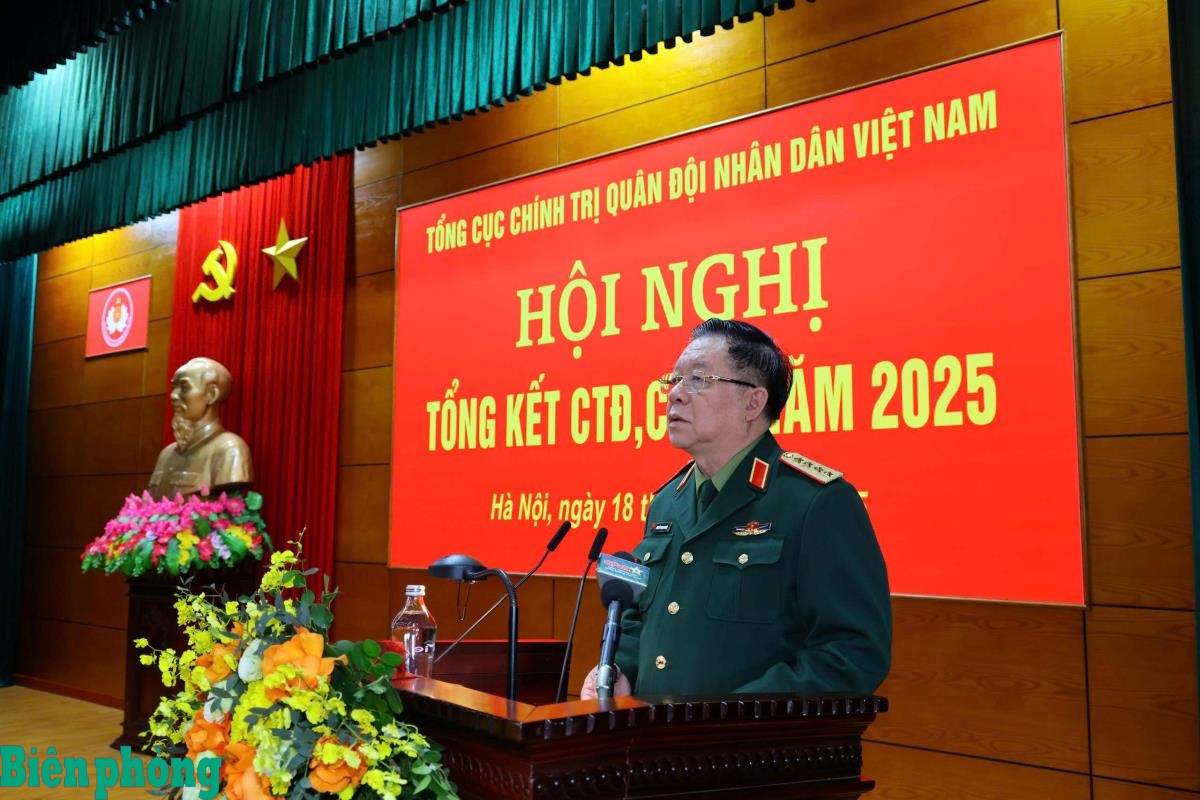 Năm 2025, hoạt động công tác Đảng, công tác chính trị trong toàn quân đã được triển khai toàn diện, đồng bộ, bám sát thực tiễn, giữ vững vai trò là “linh hồn, mạch sống” của quân đội. Các cơ quan, đơn vị đã tập trung giáo dục chính trị, định hướng tư tưởng, làm cho cán bộ, chiến sĩ toàn quân thống nhất cao về ý chí và hành động. Tham mưu xây dựng đội ngũ cán bộ các cấp đáp ứng yêu cầu điều chỉnh tổ chức, biên chế theo hướng tinh, gọn, mạnh. Các hoạt động văn học nghệ thuật, báo chí, tuyên truyền được đẩy mạnh, phản ánh sinh động nhiệm vụ quân sự, quốc phòng và các hoạt động kỷ niệm những ngày lễ lớn; đồng thời khắc họa đậm nét hình ảnh Bộ đội Cụ Hồ trong giúp nhân dân phòng, chống khắc phục hậu quả thiên tai, bão lũ.