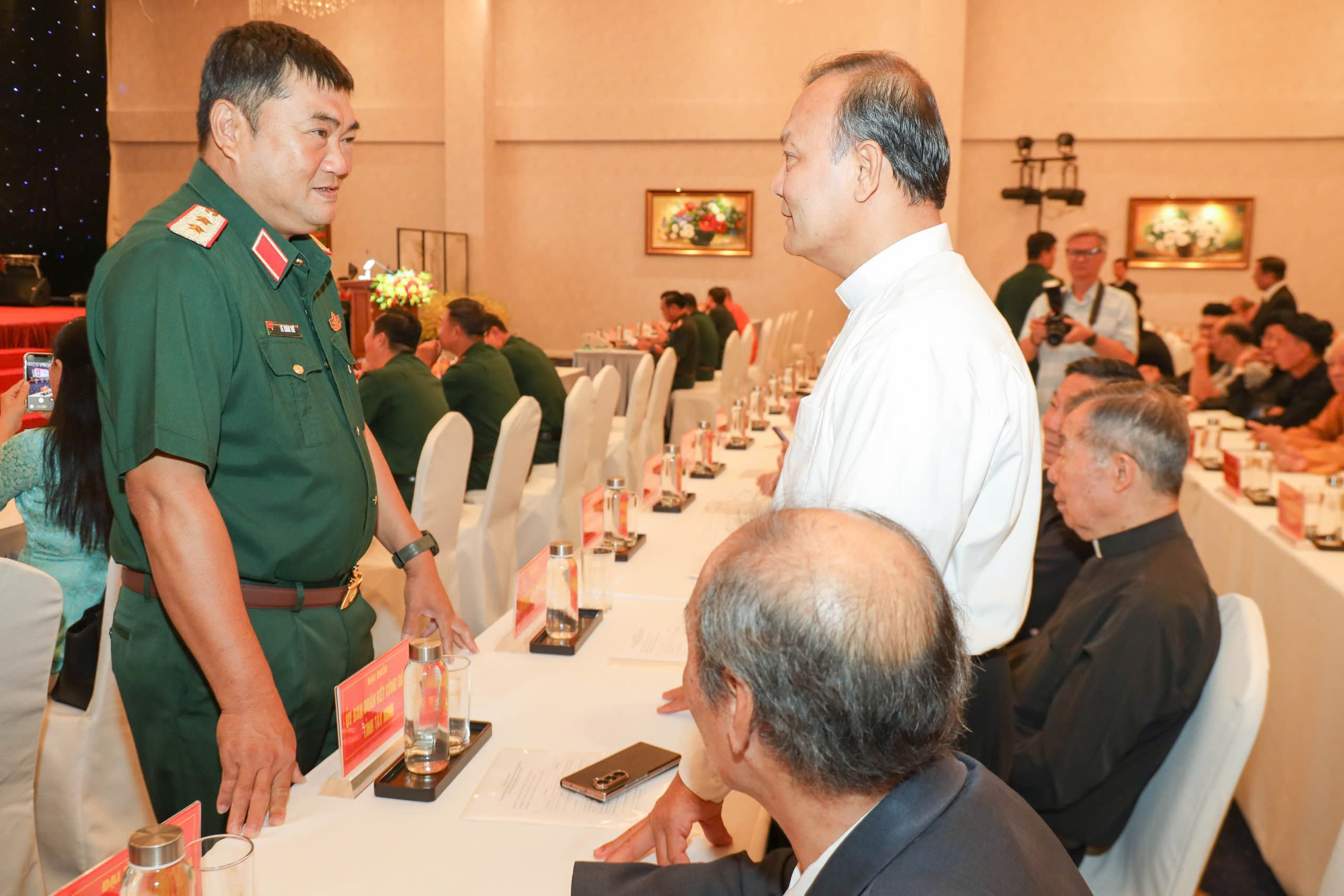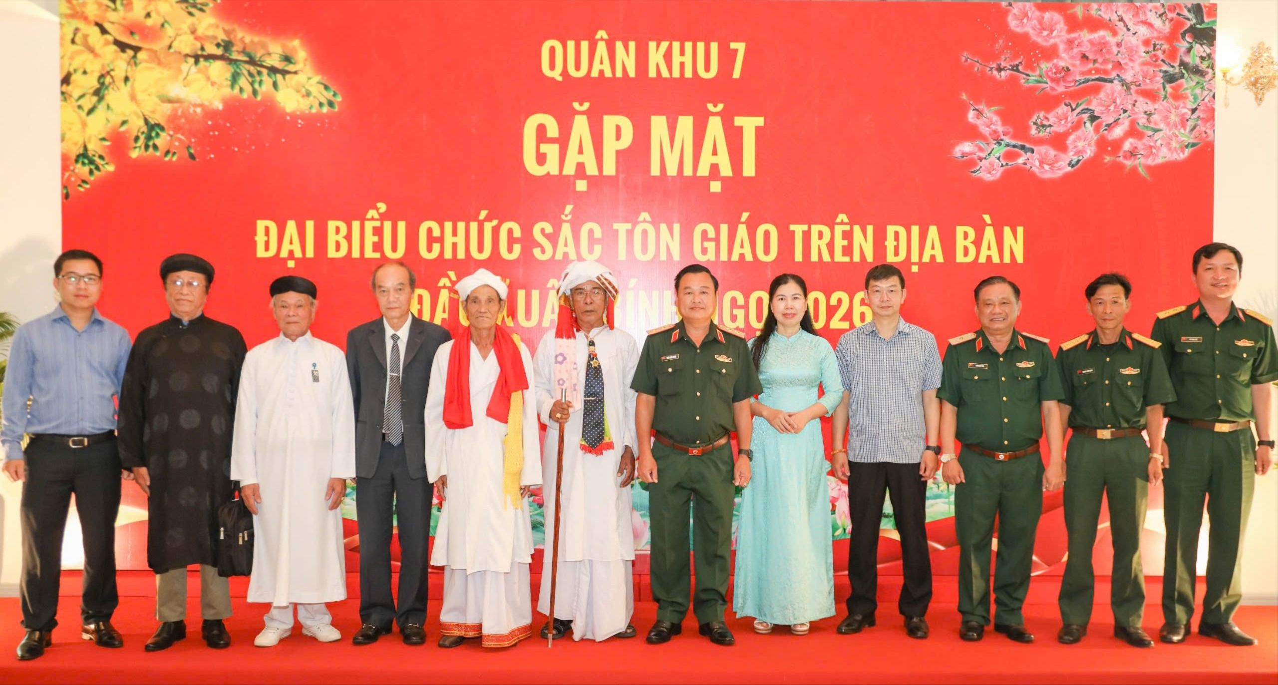 Tại buổi gặp mặt, Trung tướng Trần Vinh Ngọc, Chính ủy Quân khu 7, cho biết thời gian tới, Quân khu 7 tiếp tục nâng cao chất lượng, hiệu quả công tác dân vận ở vùng đồng bào tôn giáo; thực hiện tốt chủ trương “Tăng cường gắn kết, thân thiện, hỗ trợ, giúp đỡ đồng bào dân tộc, tôn giáo” của Thường vụ Đảng ủy, Bộ Tư lệnh Quân khu.