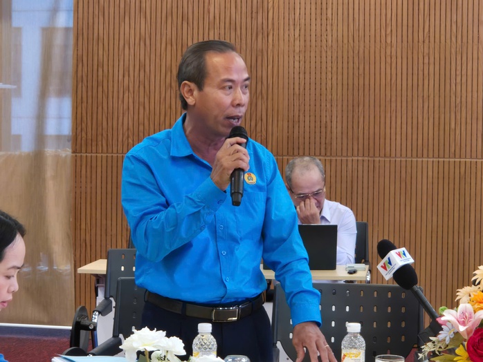Ông Nguyễn Phú Hoàng- Chủ tịch LĐLĐ tỉnh Lâm Đồng, đóng góp ý kiến tại Hội nghị góp ý dự thảo Văn kiện trình Đại hội XIV của Đảng