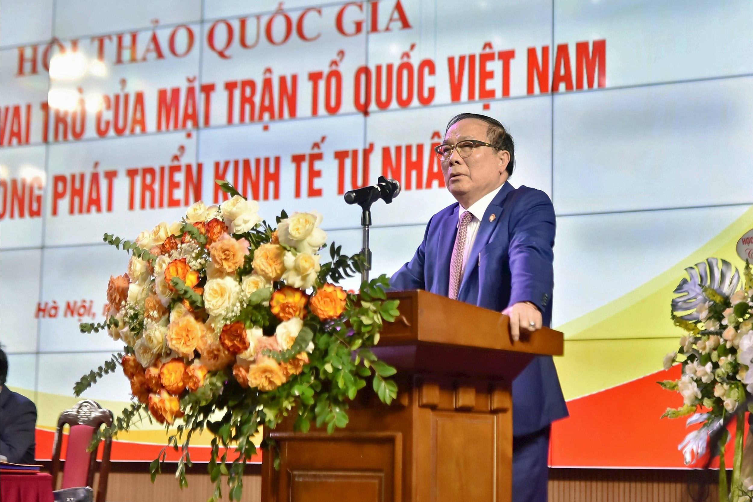 Phát biểu khai mạc Hội thảo, Ủy viên Trung ương Đảng, Phó Chủ tịch Ủy ban Trung ương Mặt trận Tổ quốc Việt Nam Hà Thị Nga cho biết, Nghị quyết số 68 về “Phát triển kinh tế tư nhân” của Bộ Chính trị đã giao nhiệm vụ cho Đảng ủy Mặt trận Tổ quốc, các đoàn thể Trung ương lãnh đạo, chỉ đạo xây dựng chương trình, kế hoạch hướng dẫn, vận động nhân dân thực hiện Nghị quyết, phát huy vai trò giám sát, phản biện xã hội, tham gia xây dựng pháp luật, cơ chế, chính sách về phát triển kinh tế tư nhân.