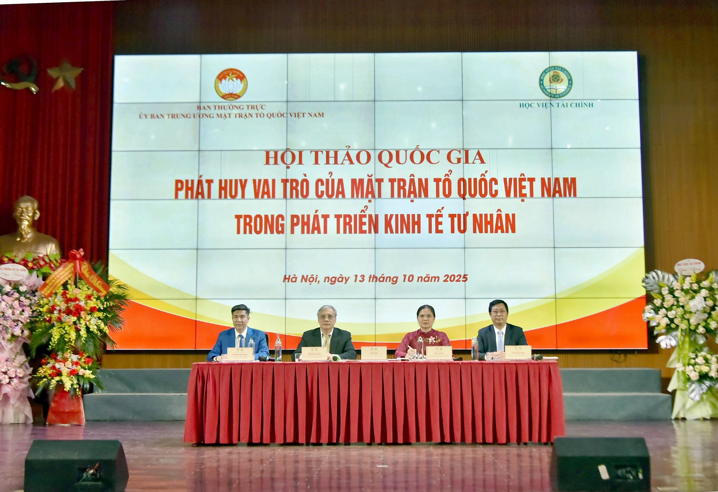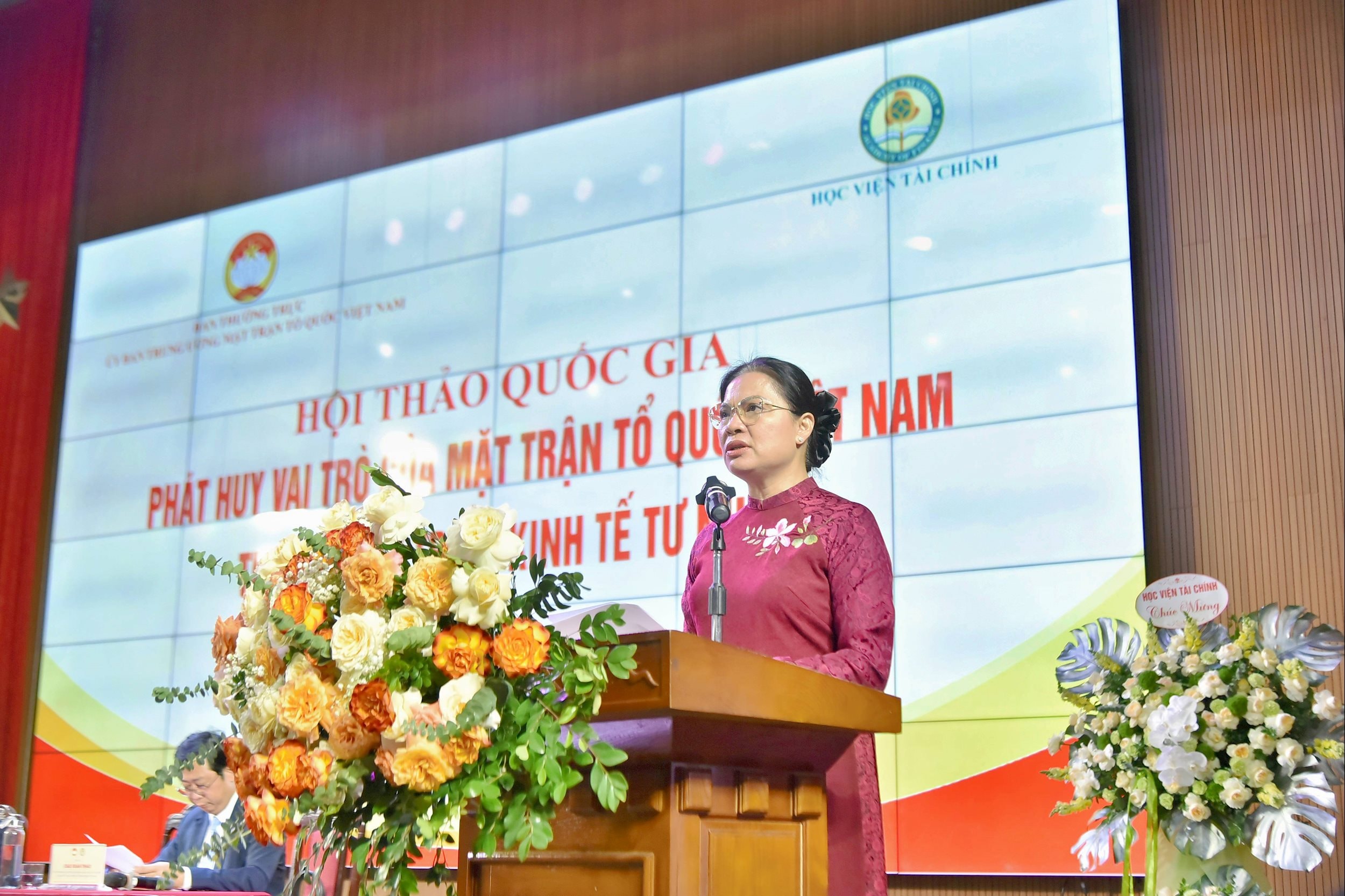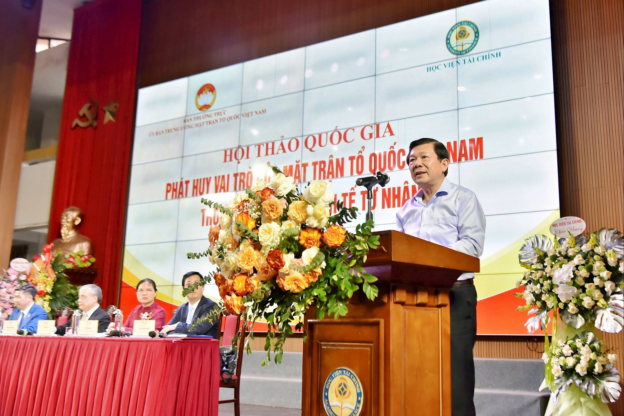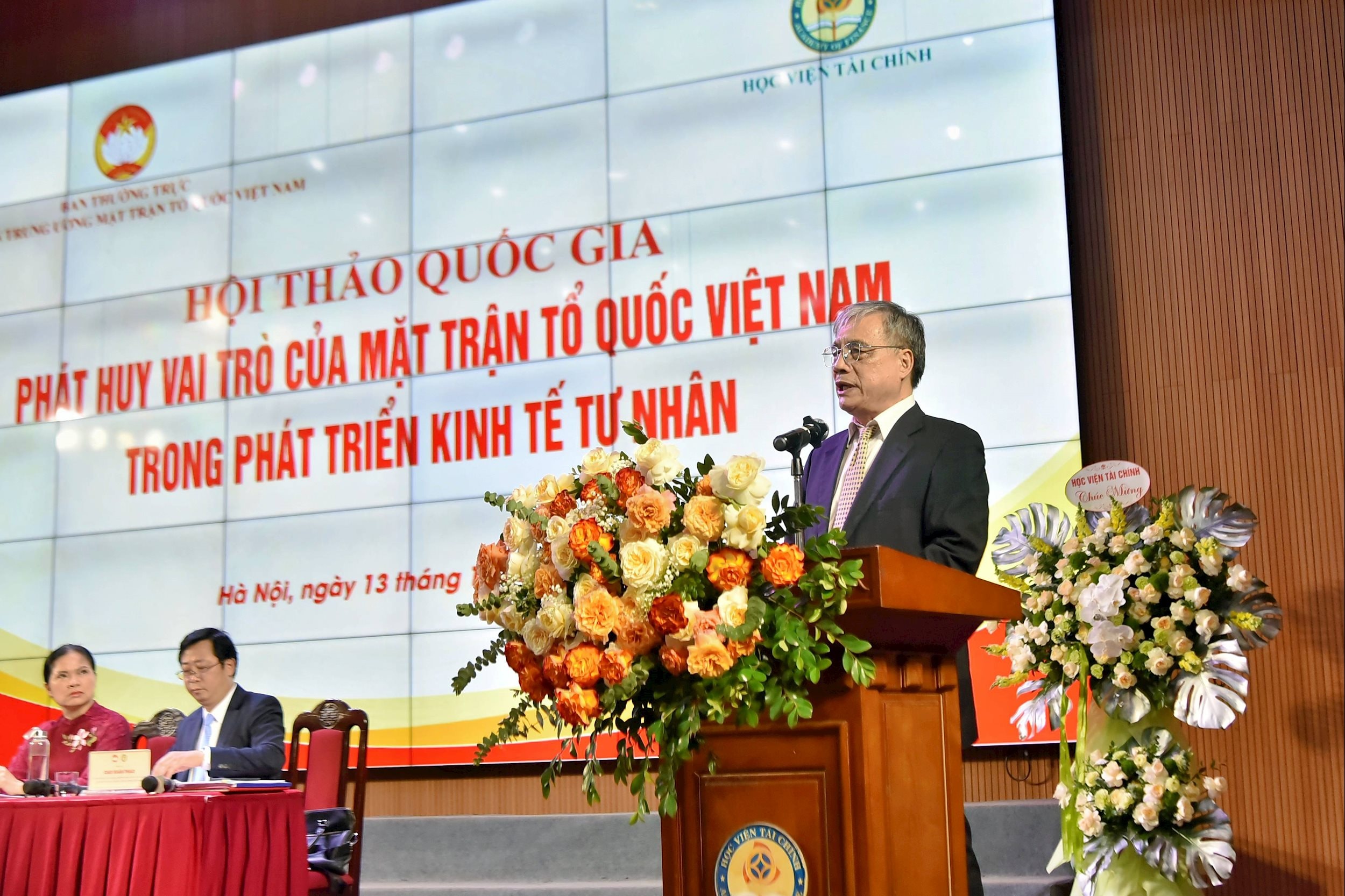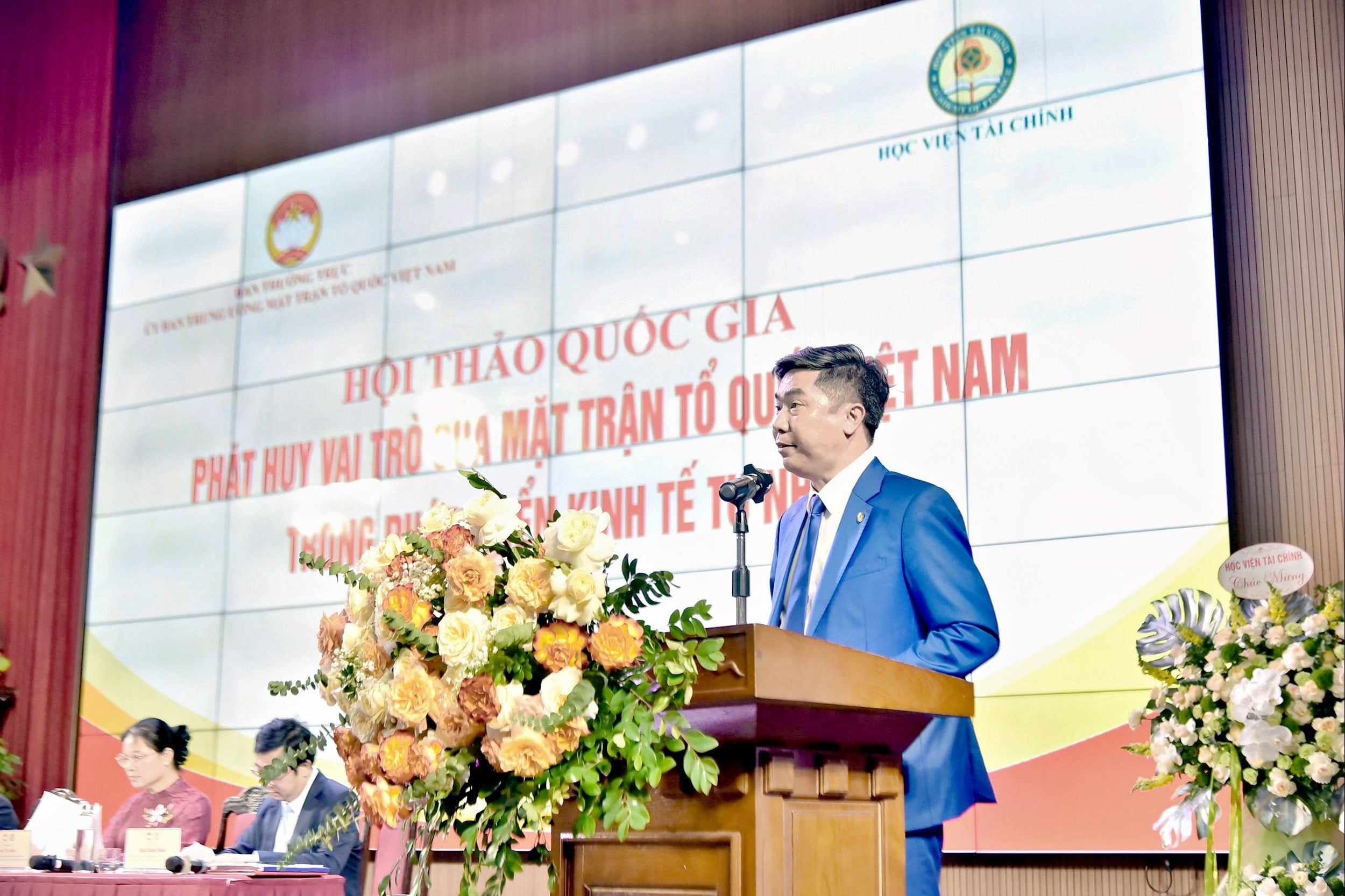 Giám đốc Học viện Tài chính bày tỏ tin tưởng các tham luận, ý kiến thảo luận tại Hội thảo sẽ cung cấp những luận cứ khoa học và thực tiễn xác đáng, góp phần làm rõ vai trò của Mặt trận Tổ quốc Việt Nam trong phát triển kinh tế tư nhân, đồng thời đề xuất những cơ chế, chính sách khả thi nhằm phát huy tiềm năng to lớn của đội ngũ doanh nhân Việt Nam trong giai đoạn mới.