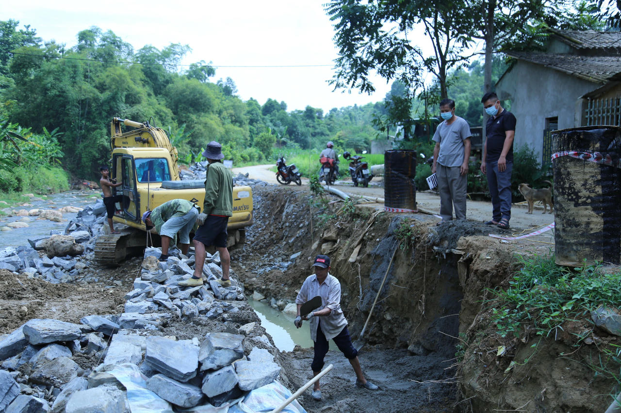 Ban giám sát đầu tư của cộng đồng tại xã Bát Xát giám sát công trình kè thủy lợi. Ảnh: Cao Cường.