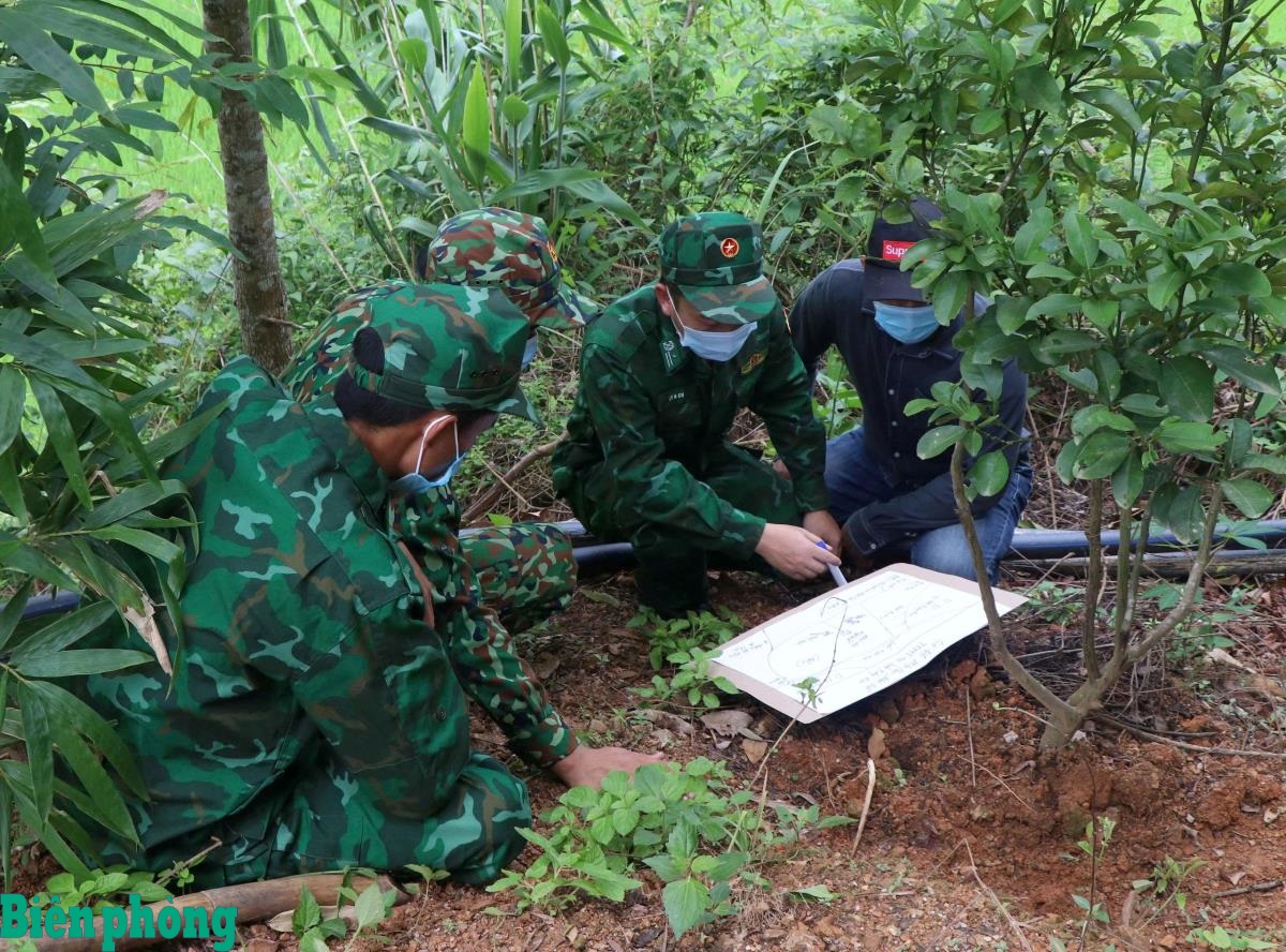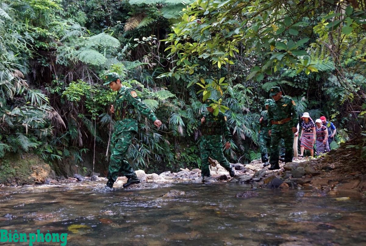 Cán bộ Đồn Biên phòng A Đớt, Bộ đội Biên phòng thành phố Huế cùng người dân tổ chức tuần tra, bảo vệ biên giới. Ảnh: Võ Tiến