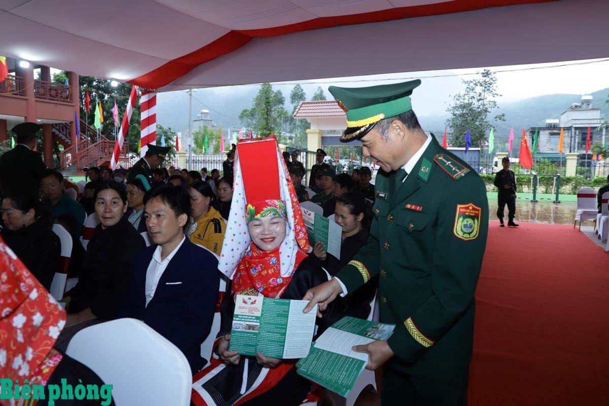Cán bộ Đồn Biên phòng cửa khẩu Hoành Mô, Bộ đội Biên phòng tỉnh Quảng Ninh tăng cường công tác tuyên truyền, phổ biến pháp luật cho người dân trên địa bàn. Ảnh: Ngọc Lâm