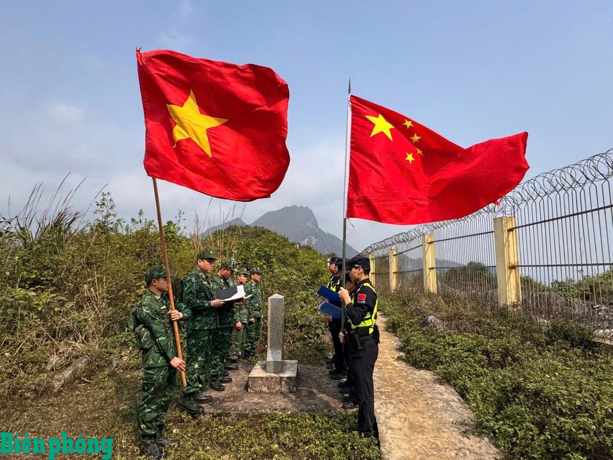 Đồn Biên phòng Xuân Trường, Bộ đội Biên phòng tỉnh Cao Bằng phối hợp với Đại đội Quản lý biên giới Nà Po, Khu tự trị dân tộc Choang Quảng Tây (Trung Quốc) tổ chức tuần tra liên hợp, thực thi pháp luật quý I năm 2026. Ảnh: Minh Chiến